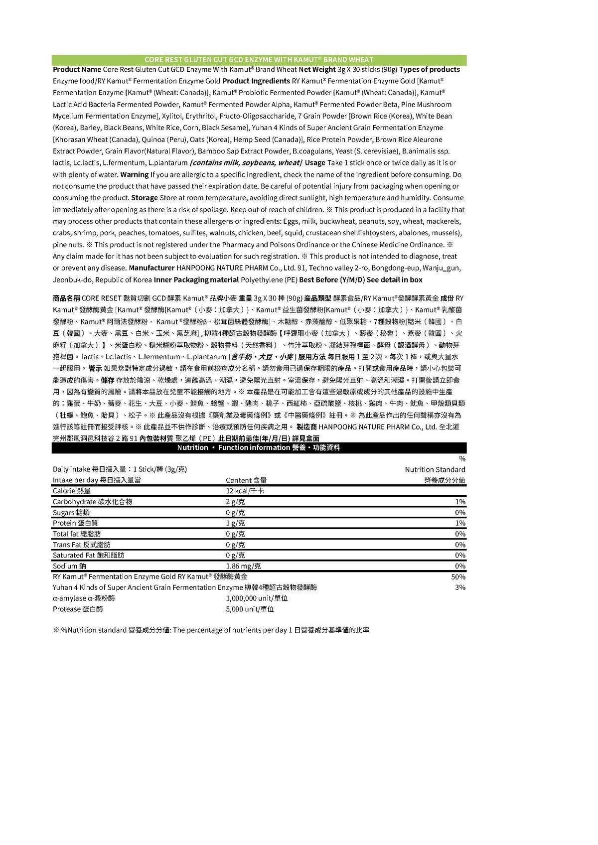 Core Reset Gluten GCD Enzyme: Digest Carbs, Protein, Fats, Gluten / 30 Packs Korea YUHAN CARE