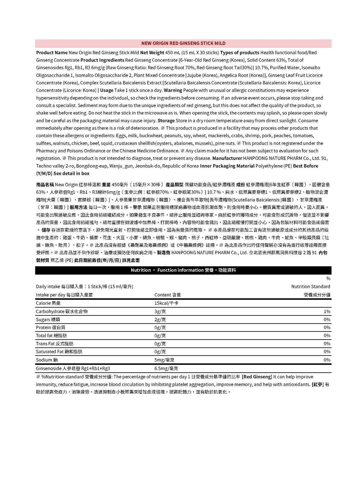 - Mild version of whole red ginseng strips: Novices taking red ginseng, reduce bitterness and increase sweetness, bringing a comfortable taste, red ginseng ingredient 6.5mg (ginsenoside)