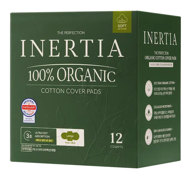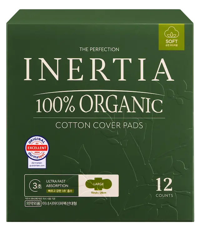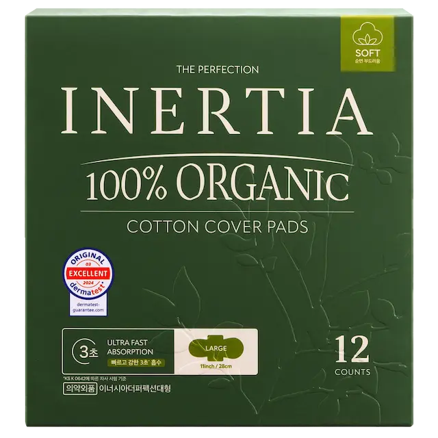 THE PERFECTION 100% 有機棉表層衛生棉/大號(大流量,14 片裝)/不含SAP/韓國製造/FDA 認証/快速吸收/活躍而忙碌的女士/持久乾爽/五層超強吸收/敏感肌膚適用